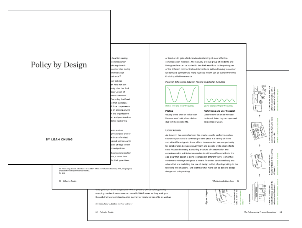 Policy by Design demonstrates how human centered design can be applied to the world of policy, specifically as it pertains to policymaking. A downloadable PDF version is available here.